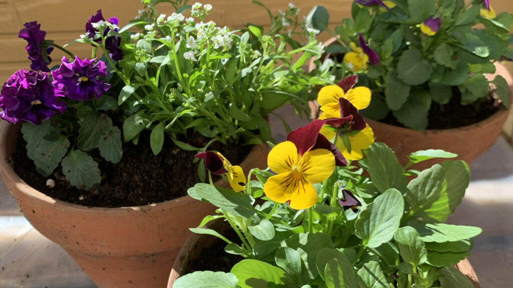 しばらく手をつけられなかったテラスの掃除。冬に向けてビオラとスィートアリッサムを植えました。